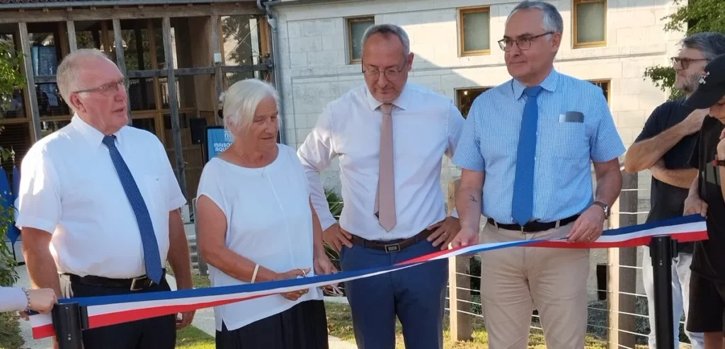 A Françoise Libourel, Maire de Vénérand infatigable soutien du projet de création du centre d’interprétation des aqueducs sur sa commune revient l’honneur de couper le ruban lors de l’inauguration.
