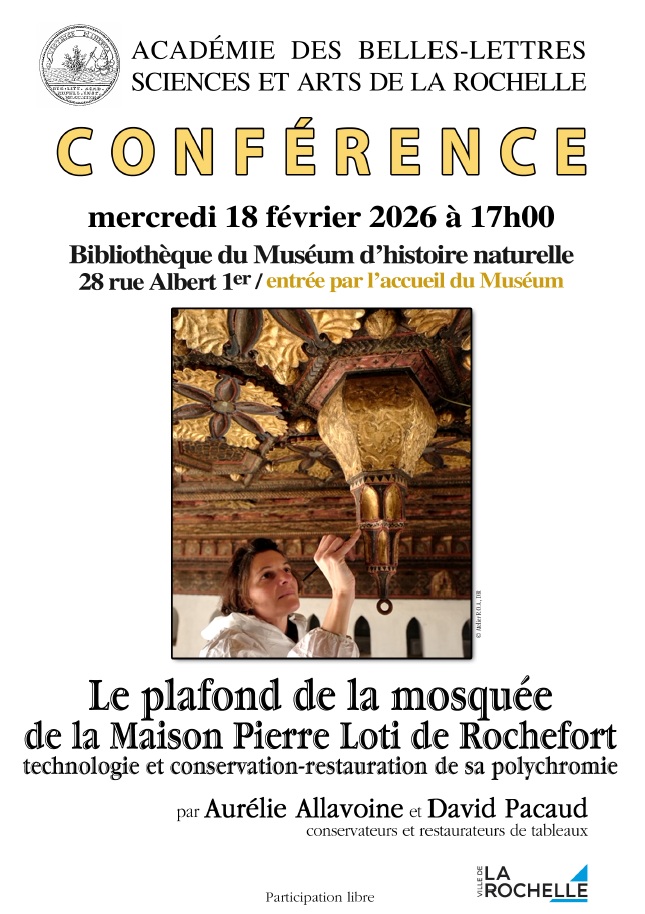 Conférence :  » Le plafond de la mosquée de la maison Pierre Loti de Rochefort ». Technologie et conservation de sa polychromie.