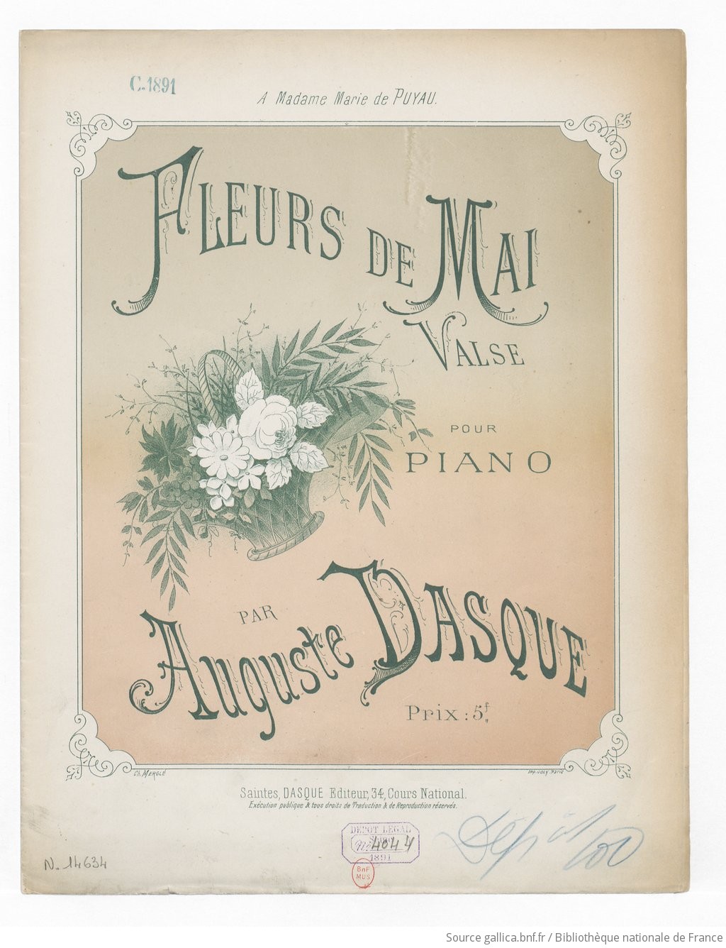 Illustration : Dasque, A., (1876) Fleur de mai, Bibliothèque Nationale de France ADCM : actes de naissance, mariage, décès