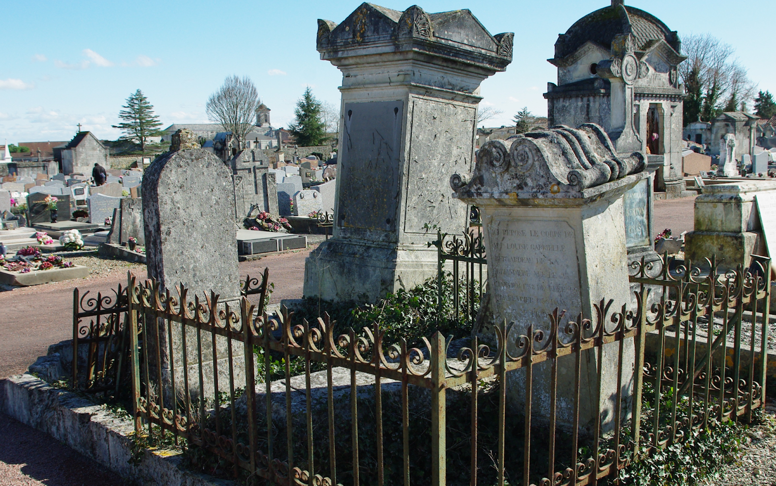 Sont également inhumés dans cette concession leurs filles, Louise Pauline épouse Fontant (1831-1867) décédée à l’âge de 36 ans, et Marguerite Gabrielle Amarillis (1832-1906) avec son époux André Ernest Bréjon, docteur en médecine (1827-1867).